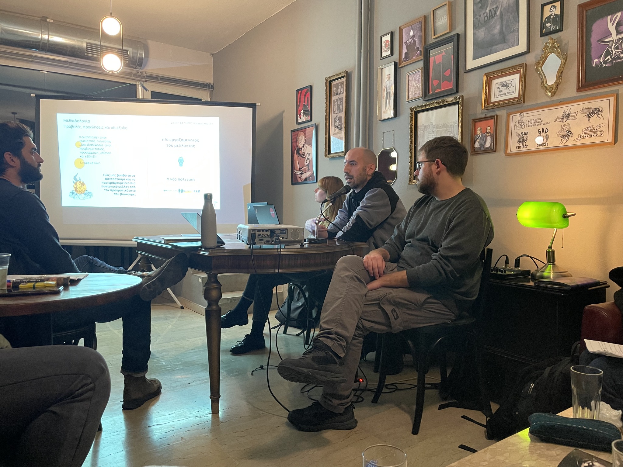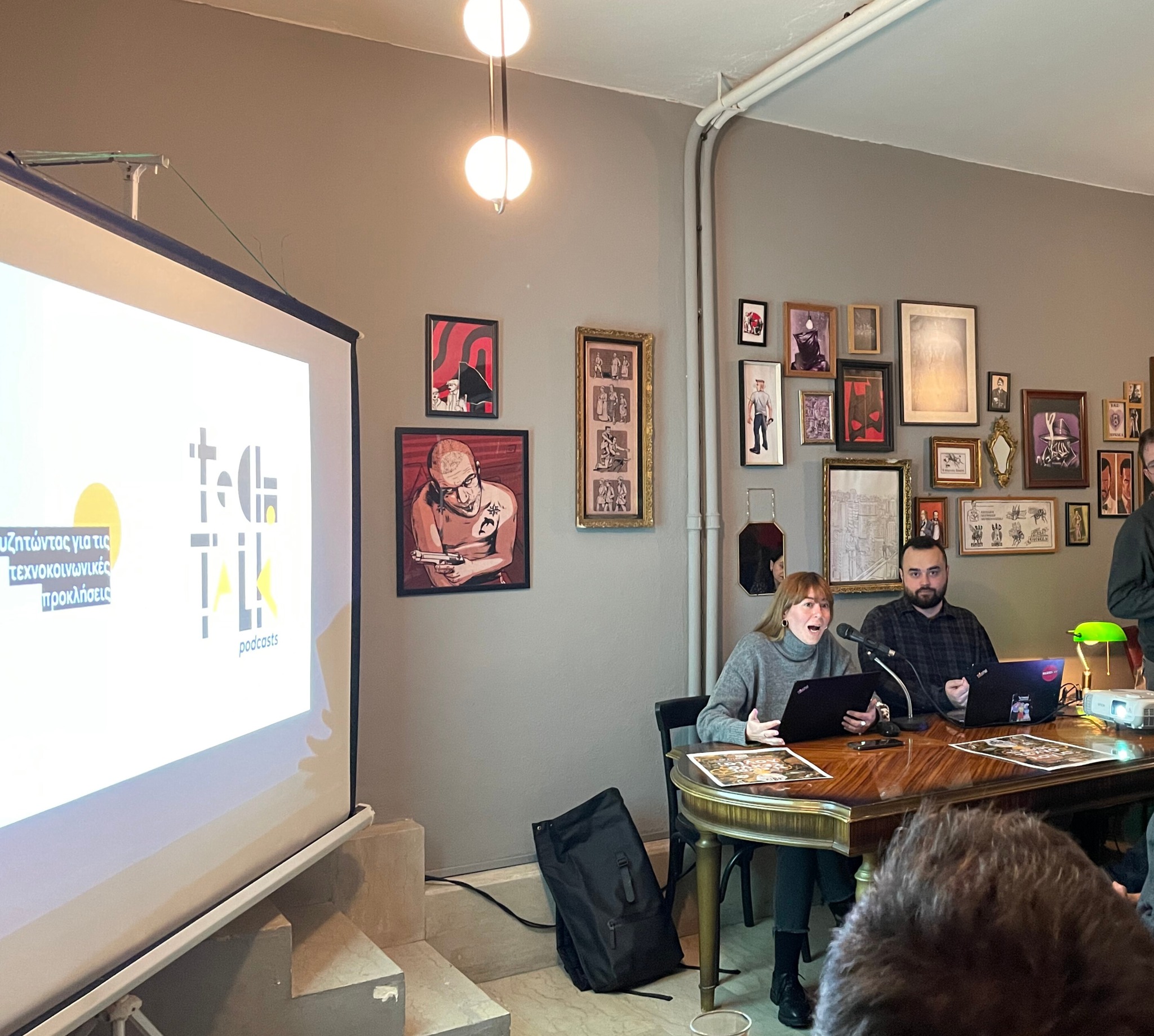 Με την συντονίστρια Ναντίανα Κουτίβα από την Sociality να ανοίγει την εκδήλωση τον λόγο πήρε για έναν σύντομο χαιρετισμό ο Γιώργος Μελισσουργός, συντονιστικής ΚΑΛΟ του ιδρύματος Χάινριχ Μπελ, που χρηματοδοτεί και το έργο. Αμέσως μετά ο Αντώνης Φάρας (Sociality) παρουσίασε το σύνολο του έργου και πιο συγκεκριμένα τα podcast που θα γίνουν: “Τι είναι τεχνολογία” – που ήδη κυκλοφόρησε, “Ψηφιακή Τέχνη”, “Εργασία σε Πλατφόρμες”, “Φύλο & Τεχνολογία” καθώς και ένα ακόμα επεισόδιο έκπληξη! Επίσης αναφέρθηκε στην έντυπη έκδοση που θα περιέχει όλα τα αποτελέσματα του έργου.
